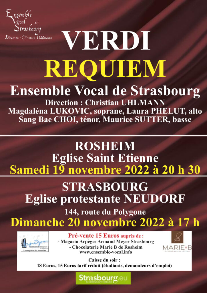 Nous relayons avec plaisir, la date des concerts de l’EVS, ensemble dont notre collègue et ami Daniel GREULICH est choriste !