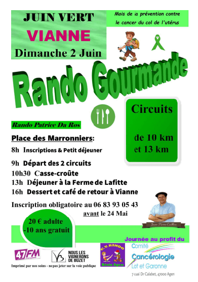 Une rando gourmande proposée dans le cadre de la campagne de prévention* le dimanche 2 juin à Vianne (47)