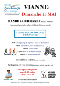 Organisée par l’association culture et loisirs de Vianne au profit du COMITE DE CANCEROLOGIE