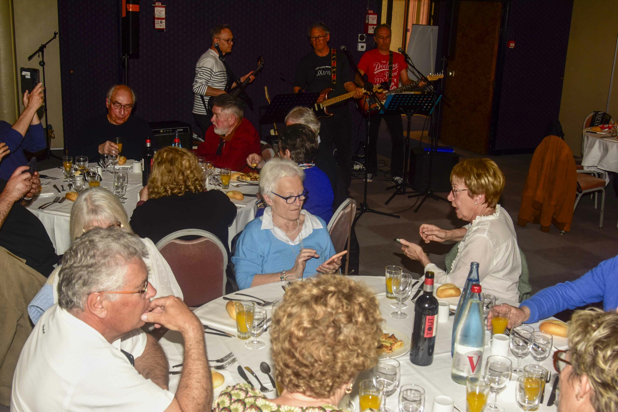 La séance plénière se termina à 12h45 et place fut donnée, d’abord à la musique , très Rock and Roll cette année, avec les R’Pris D’Justesse », groupe éphémère composé du talentueux Bernard Valet (membre du CFR), accompagné de deux anciens collègues, Régis Niveau et Olivier Sautour.